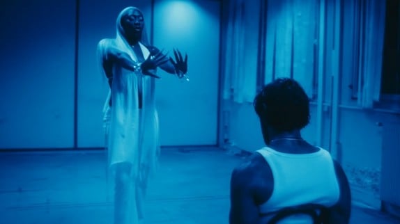 Dans son clip, réalisé par Zaven, Aya Nakamura nous donne rendez-vous dans une soirée torride. Sauf que derrière les projecteurs et les chorégraphies sur le dancefloor se cache une autre réalité. Au sous-sol, l'élu de son coeur est attaché à une chaise pour mieux le garder auprès d'elle. Et ce n'est autre que l'acteur Nassim Lyes qui se retrouve dans les filets de la chanteuse. A 37 ans, le comédien originaire de Nîmes - et ancien champion de France junior de kick-boxing - s'est déjà fait remarquer dans les films "Made in France", "Sous la Seine" ou "Farang". Selon les internautes, cette scène ferait référence au personnage de Keisha, jouée par Taral Hicks dans le thriller "Belly", sorti en 1998 et réunissant les rappeurs Nas, DMX et Method Man au casting.