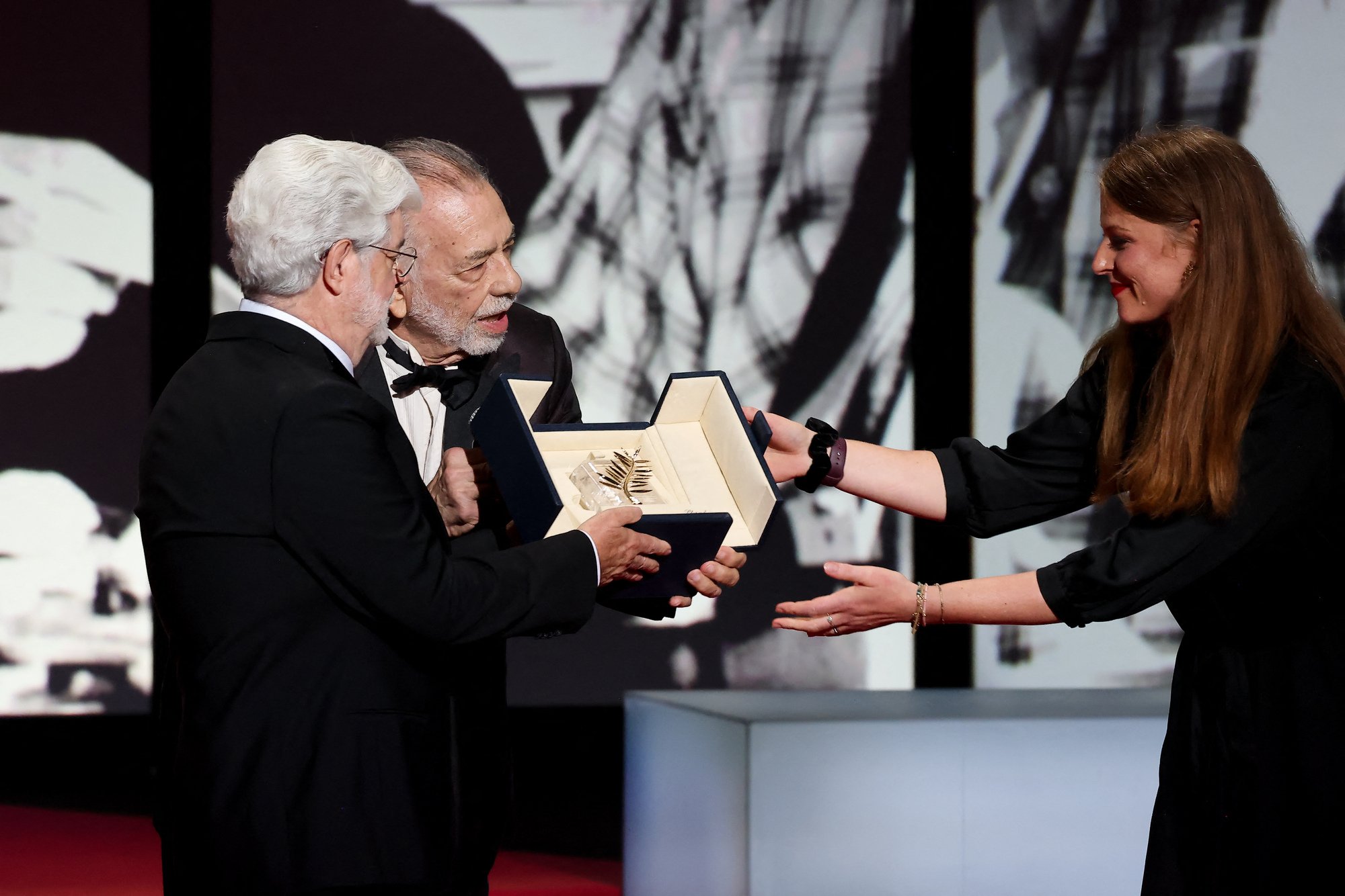 Francis Ford Coppola a investi près de 120 millions dans le film Megalopolis. Un pari artistique immense... qui s'est transformé en échec commercial. Francis Ford Coppola, George Lucas (Palme d'or d'honneur) - Cérémonie de clôture du 77ème Festival International du Film de Cannes au Palais des Festivals à Cannes. © Borde-Jacovides-Moreau / Bestimage - © BestImage, JACOVIDES-BORDE-MOREAU / BESTIMAGE
