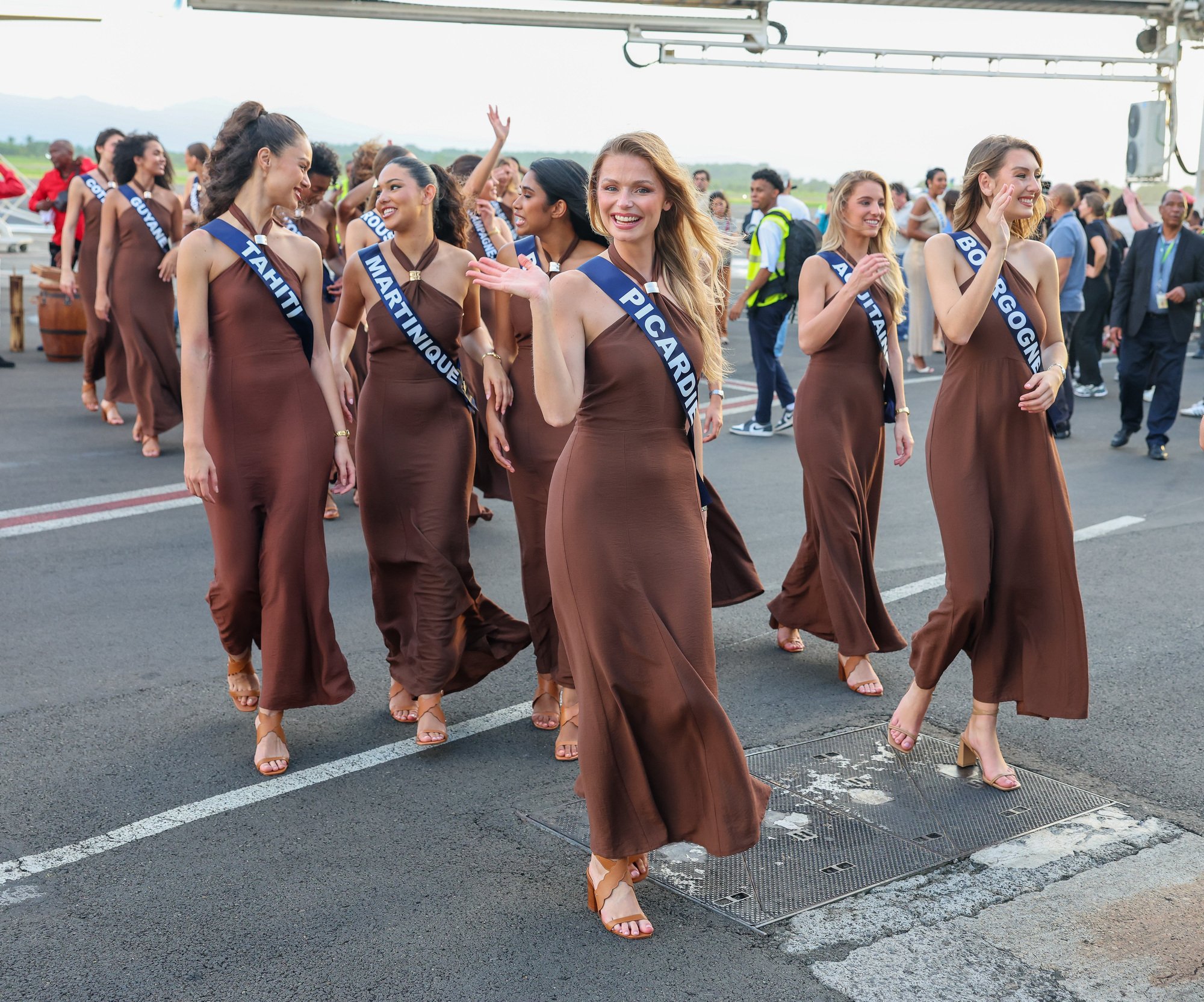 Avant la cérémonie Miss France 2026, c'est la fête en Martinique ! Les 30 candidates divines en robe marron d'une marque pas choisie au hasard