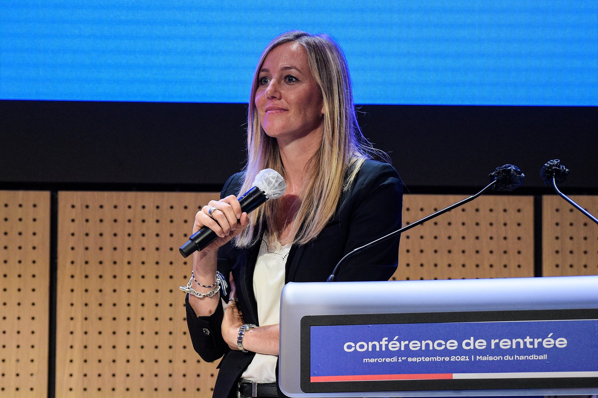 Pendant les vacances d'hiver, les personnalités sont nombreuses à avoir mis le cap sur les différentes stations de ski en France. Mary Patrux ( journaliste beinsports) lors de la conférence de presse de la Fédération française de handball (FFHB) à la Maison du Handball au Parc des Sports Dominique Duvauchelle à Créteil, France. Federico Pestellini/Panoramic/Bestimage - © BestImage, Federico Pestellini / Panoramic / Bestimage