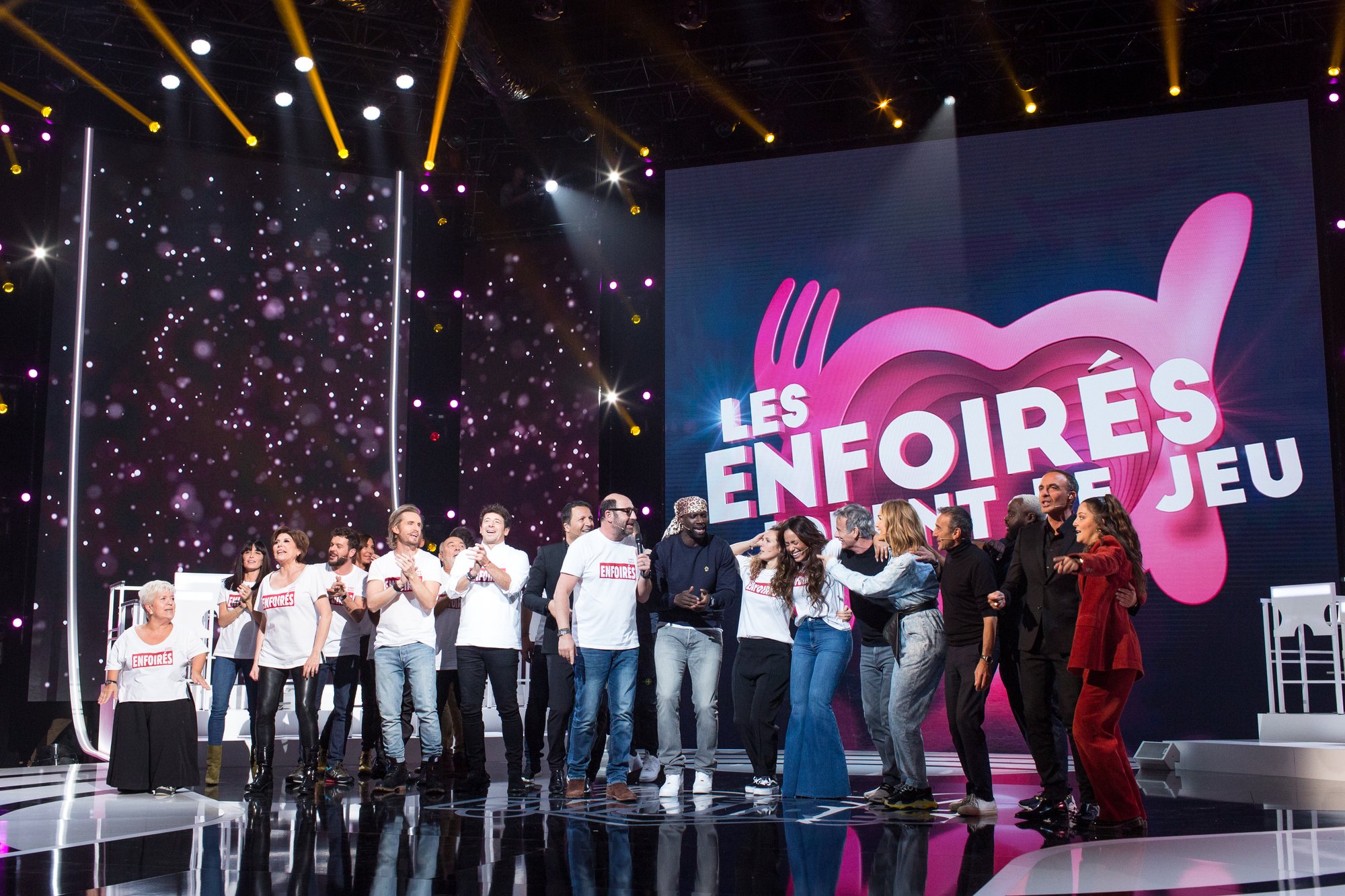 Cette célèbre icône de la musique refuse catégoriquement de participer aux Enfoirés. Exclusif - Mimie Mathy, Jenifer Bartoli, Liane Foly, Claudio Capéo, Zazie, Philippe Lacheau, Gérard Jugnot, Patrick Bruel, Arthur (Jacques Essebag), Kad Merad, Omar Sy, Laure Pester (Lorie), Amel Bent, Franck Dubosc, Vitaa, Élie Semoun, Issa Doumbia, Nikos Aliagas, Camille Lellouche - Enregistrement de l'émission "Les enfoirés jouent le jeu". Cyril Moreau / Bestimage - © BestImage, CYRIL MOREAU / BESTIMAGE