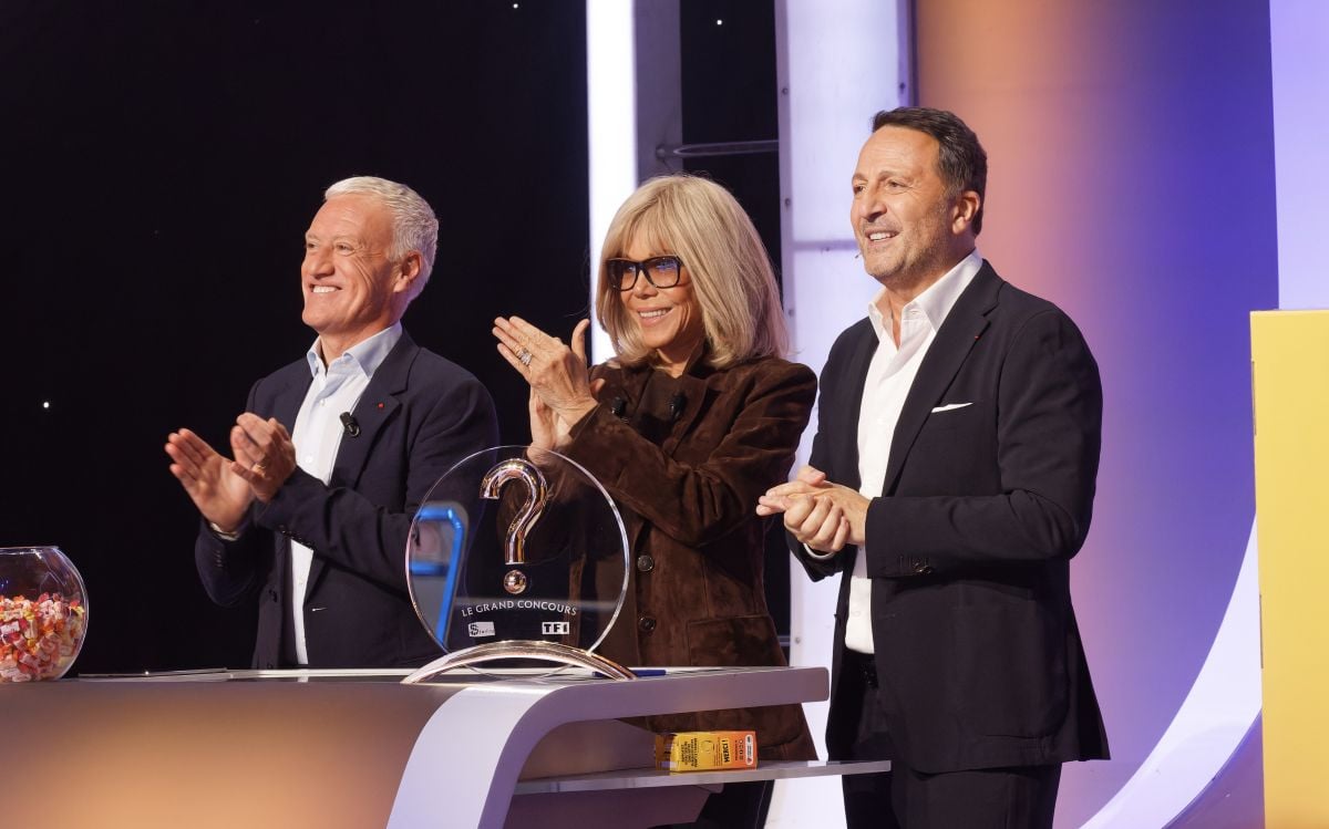Didier Deschamps, Brigitte Macron et Arthur dans "Le grand concours" spécial "Pièces jaunes" sur TF1 - © © PHILIPPE LEROUX / TF1